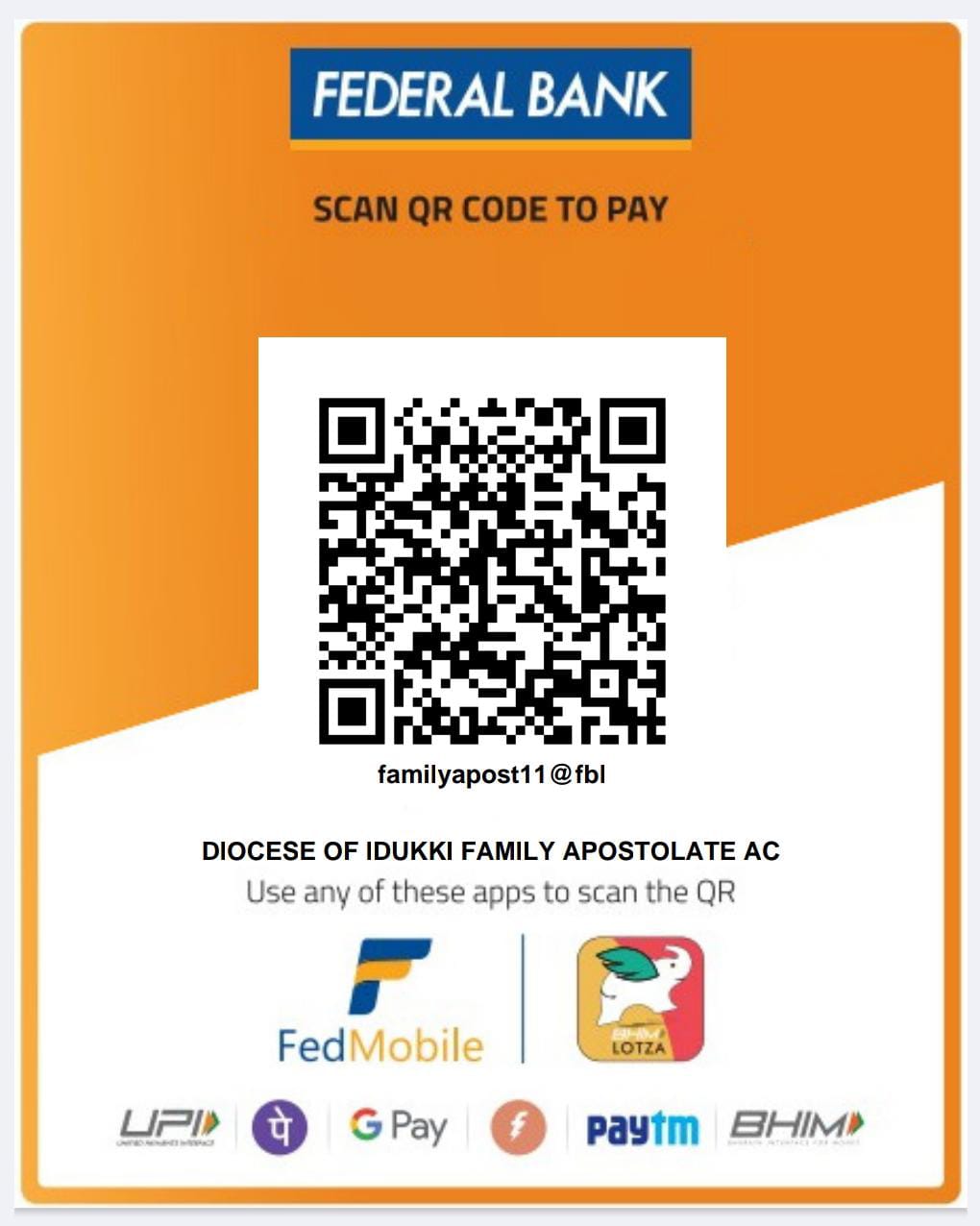 A/c Holder: Diocese of Idukki Family Apostolate